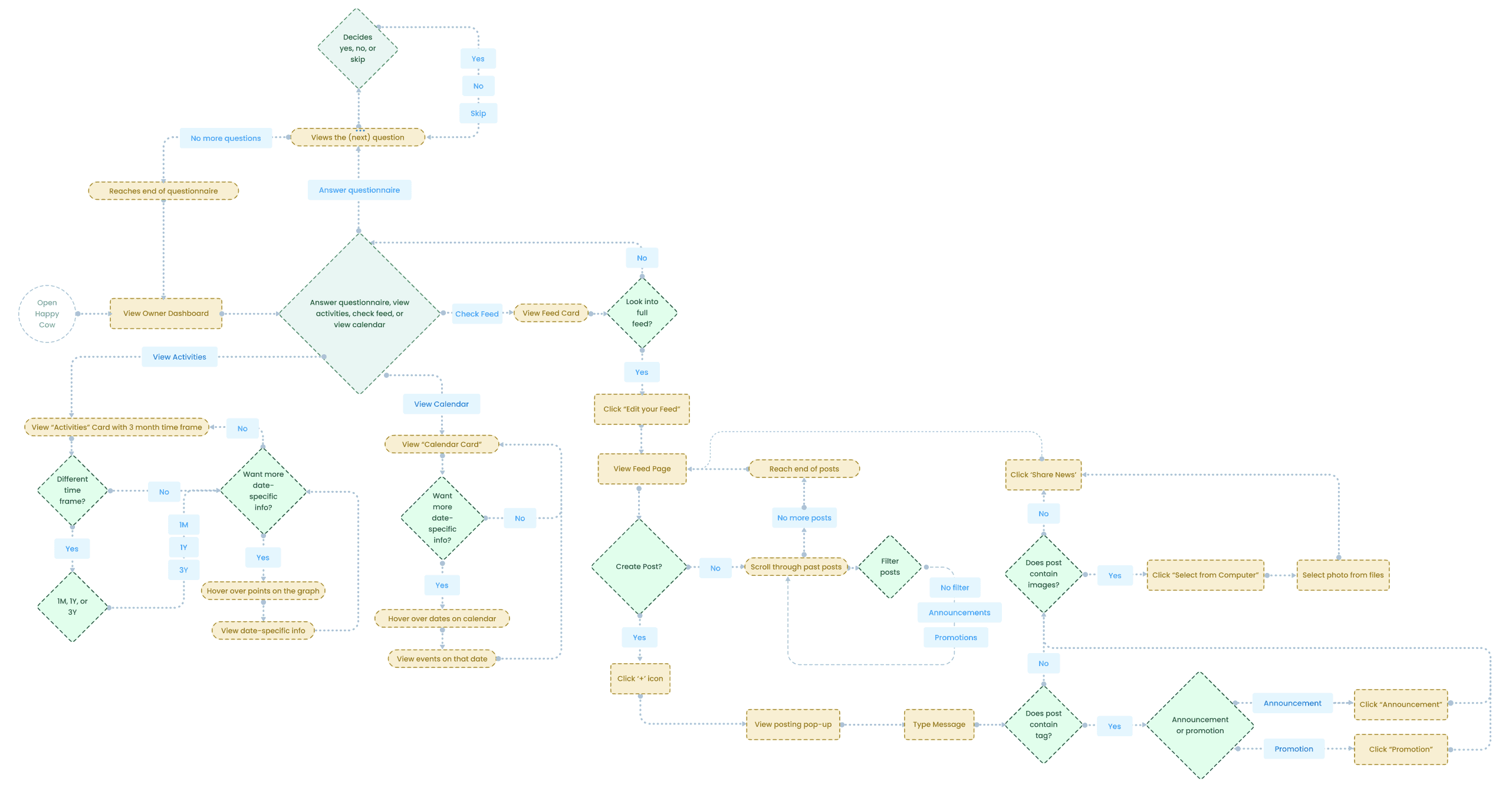 To make the dashboard more actionable, I mapped how business owners could use it to monitor activity, explore engagement, and, most importantly, share timely updates.