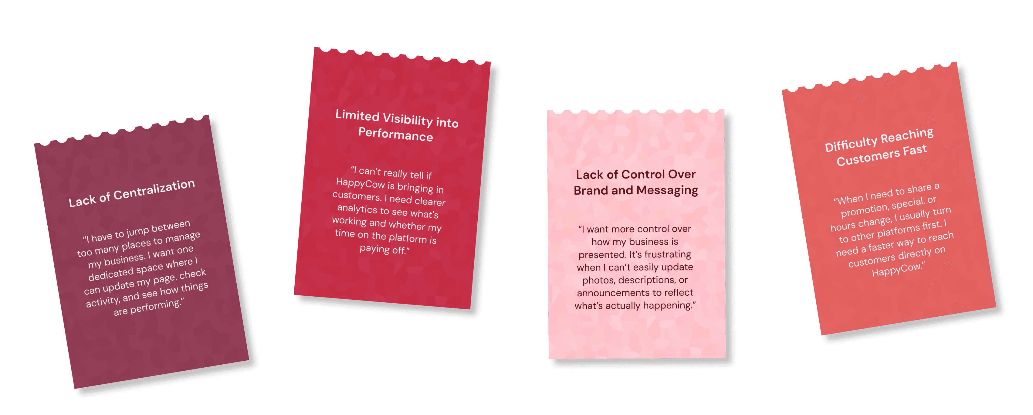 We conducted 9 interviews and analyzed 186 survey responses from businesses to uncover what's frustrating about running their restaurant on Happycow.